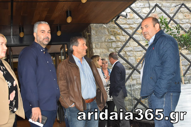 Μαζί με τον πρωθυπουργό ήταν η Υπουργός Πολιτισμού και Αθλητισμού Λίνα Μενδώνη, ο Αναπληρωτής Υπουργός Εσωτερικών Στέλιος Πέτσας, ο γραμματέας Πολιτικής Επιτροπής της Νέας Δημοκρατίας Παύλος Μαρινάκης, οι Βουλευτές του Νομού Βασιλειάδης, Καρασμάνης και Σταμενίτης, ο Αντιπεριφερειάρχης Πέλλας Δάνης Τζαμτζής, μέλη της Τοπικής Αυτοδιοίκησης των Δήμων, καθώς και στελέχη του κόμματος στην Πέλλα.