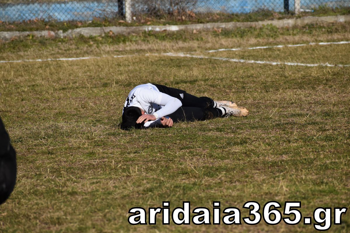 Οι πρωτοπόροι της Β' κατηγορίας του 1ου ομίλου φιλοξενούμενοι, προηγήθηκαν στο σκορ με γκολ του Γάτσου στο 10'. Οι γηπεδούχοι αντέδρασαν στο δεύτερο μέρος και ισοφάρισαν με γκολ του Μούγιου στο 60'. Είκοσι λεπτά αργότερα ο Νίκος Ελέζι έβαλε και πάλι μπροστά την Σκύδρα στο σκορ, κάνοντας το 1-2. Οι γηπεδούχοι έδειξαν ψυχικά αποθέματα και κατάφεραν να ισοφαρίσουν εκ νέου, με σκόρερ και πάλι τον Μούγιο, ο οποίος διαμόρφωσε το τελικό 2-2.